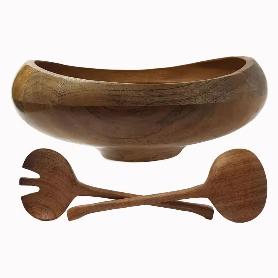 Cuenco para servir comida de estilo moderno, utensilios de cocina, con cubiertos Superior cuenco de madera de calidad, diseño Vintage de Color marrón