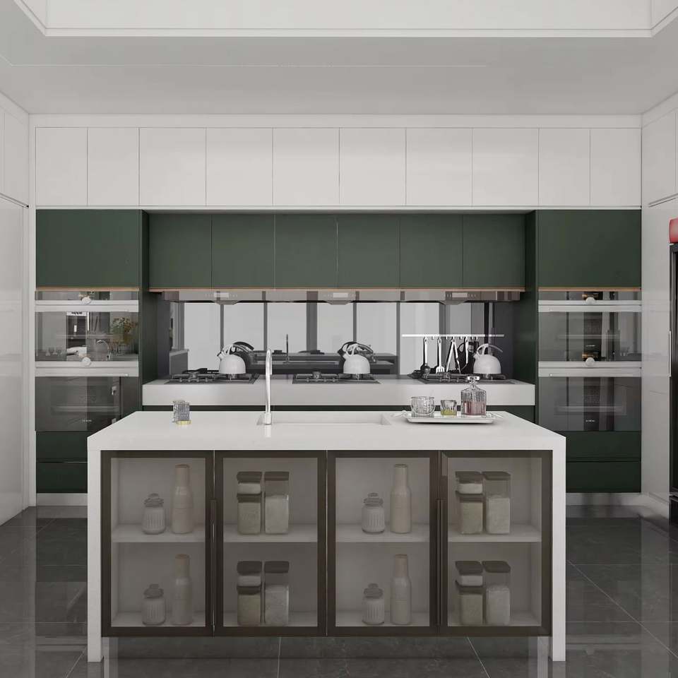 Isla de Cocina Modular Personalizada de Estilo Moderno con Acabado Brillante, Tablero de Melamina y Madera Contrachapada, Fregadero de Acero Inoxidable para Muebles de Hogar y Apartamentos