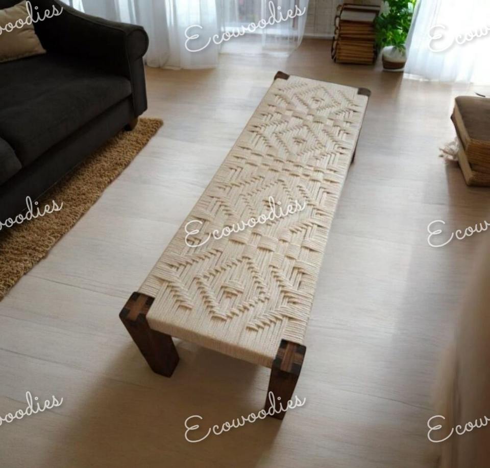 Palabra clave:Muebles madera yute Banco cuerda, rectángulo