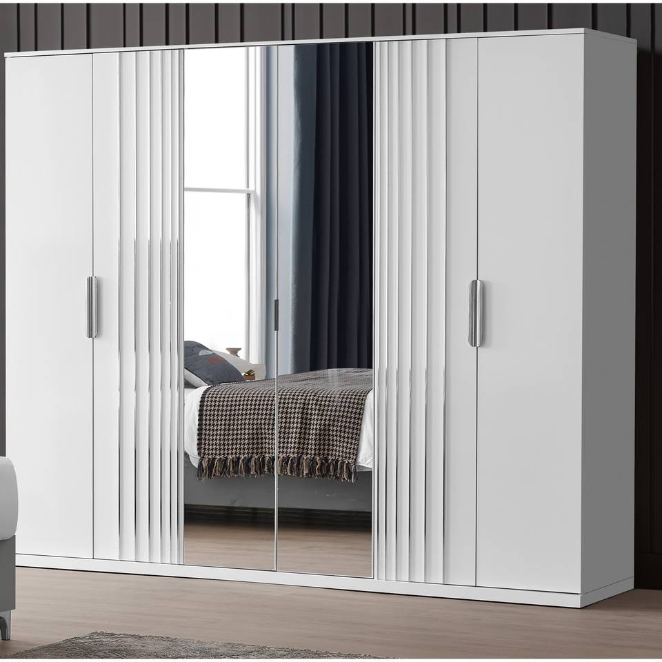Armario de Dormitorio Gris de Estilo Moderno y Alta Calidad, 5/6 Puertas, Espejo Duradero, Muebles para el Hogar, Gran Capacidad de Almacenamiento, Marca Athome