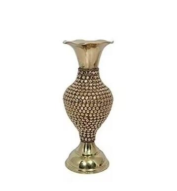 Florero de decoración interior y hogar de estilo moderno Florero de metal de aluminio Premium con diseño de cuentas de oro y cristal brillante