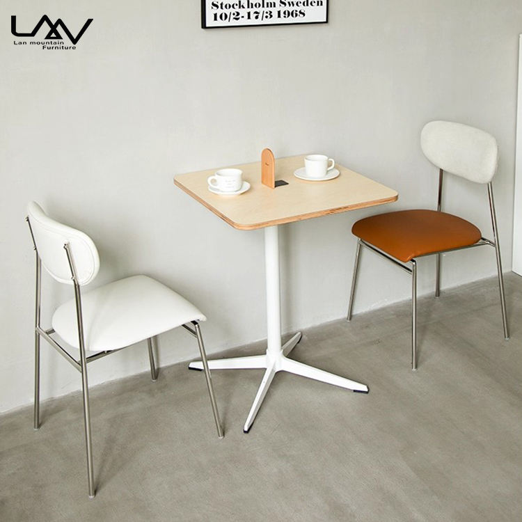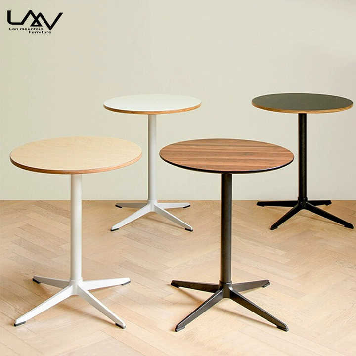 Estilo moderno Hotel Restaurante Mesa pequeña redonda Bistro Café Marco de metal Mesa de comedor superior de madera Muebles