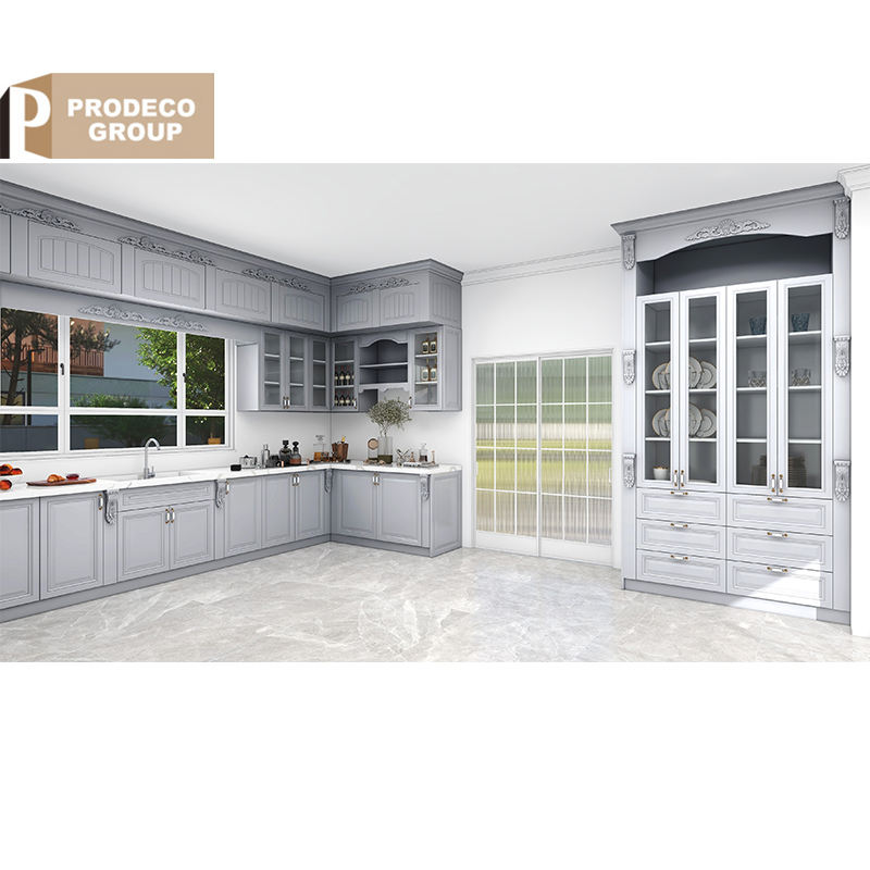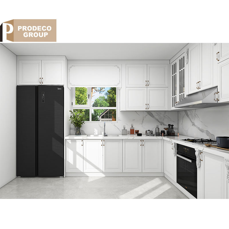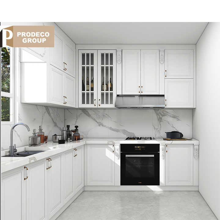 Gabinetes de cocina hidráulicos en forma de L de estilo moderno Diseño simple para cocina pequeña