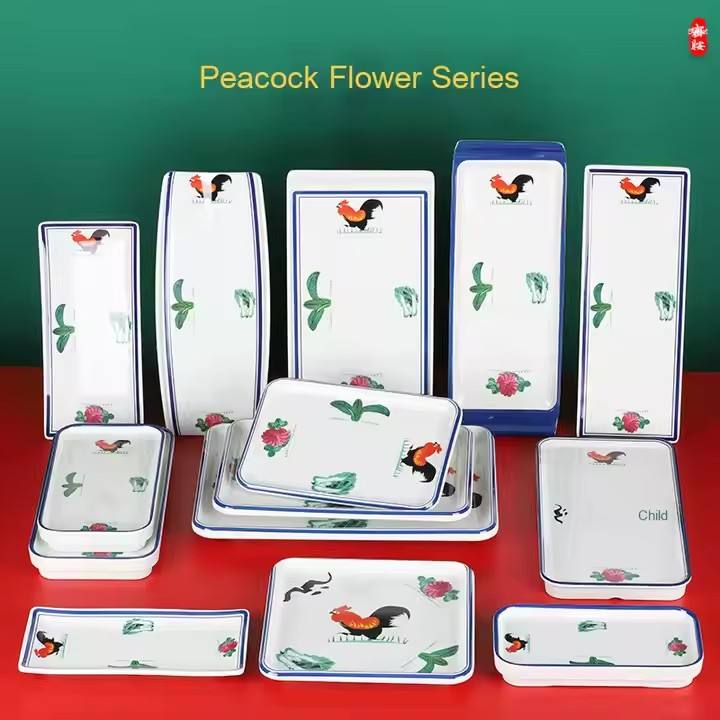 Juego de platos de melamina de estilo moderno para restaurante, olla caliente creativa, rollo de carne, vajilla plana con diseño de olla caliente antigua de gallo