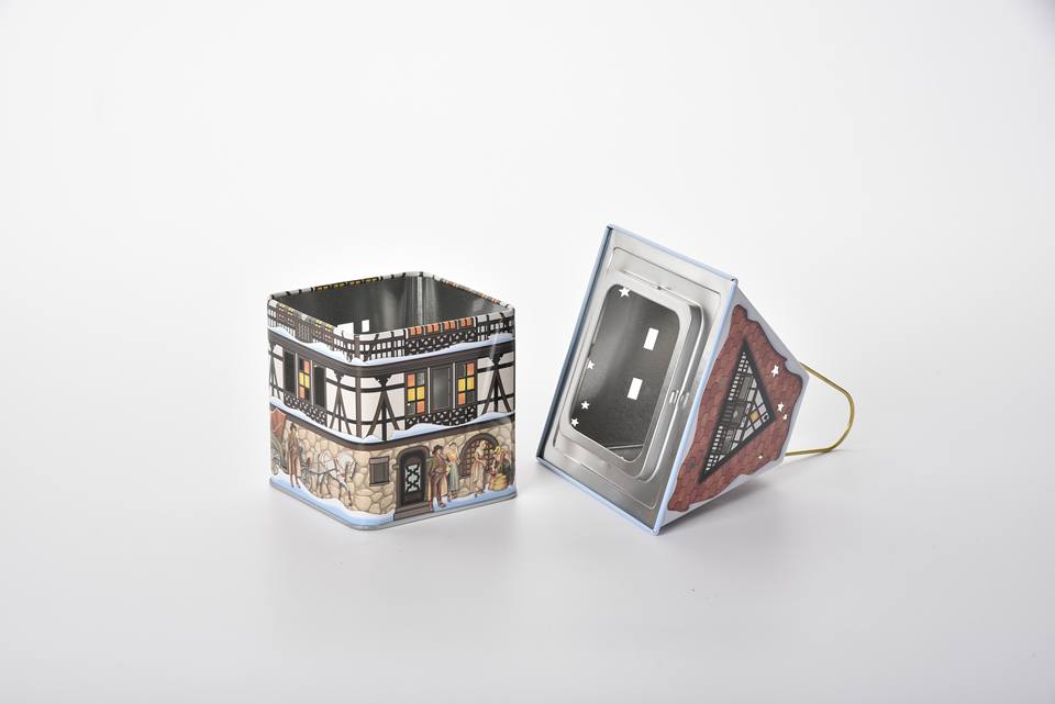 Contenedor de Casa de lámpara de hojalata de Metal de estilo moderno con asa exquisito almacenamiento especial LP 87X87X168 impresión Offset artesanías de Metal