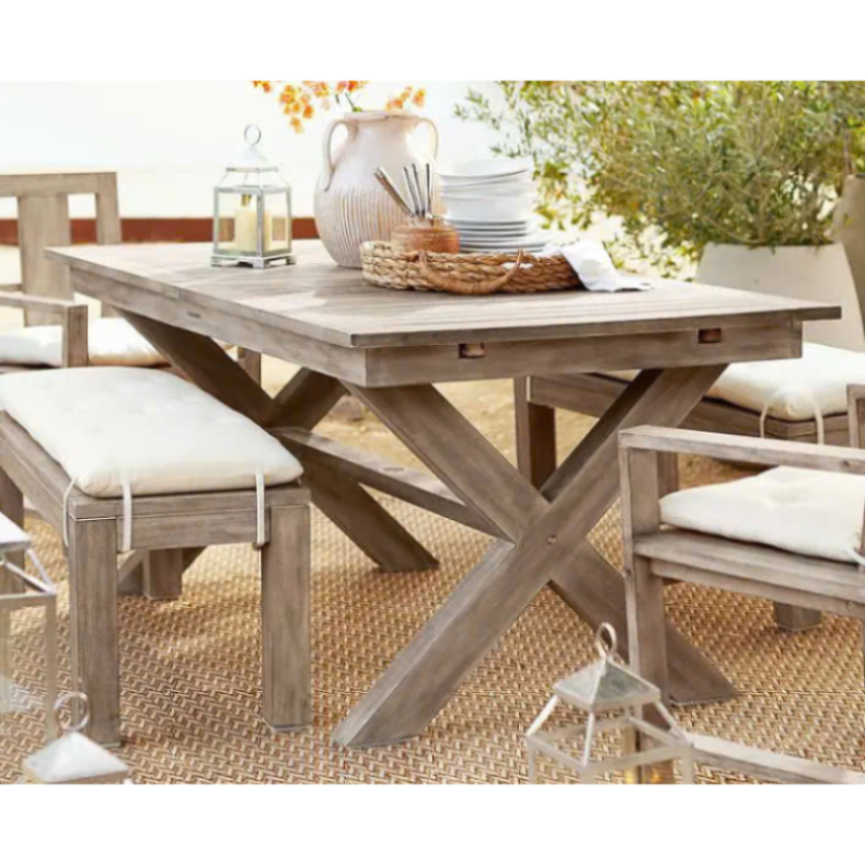 Juego de comedor de estilo moderno para exteriores con marco de aluminio de madera maciza resistente a los rayos UV 3 años de garantía OEM ODM Service Villa & Hotel Use