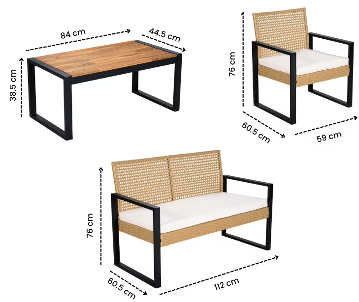 BeNK Rattan Wicker Furniture Set 4-Piece