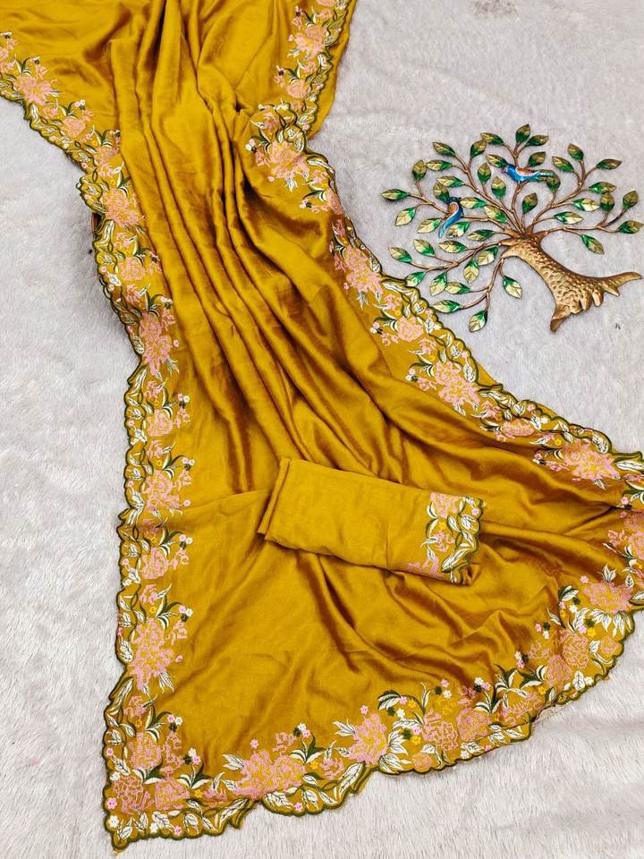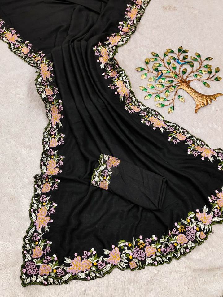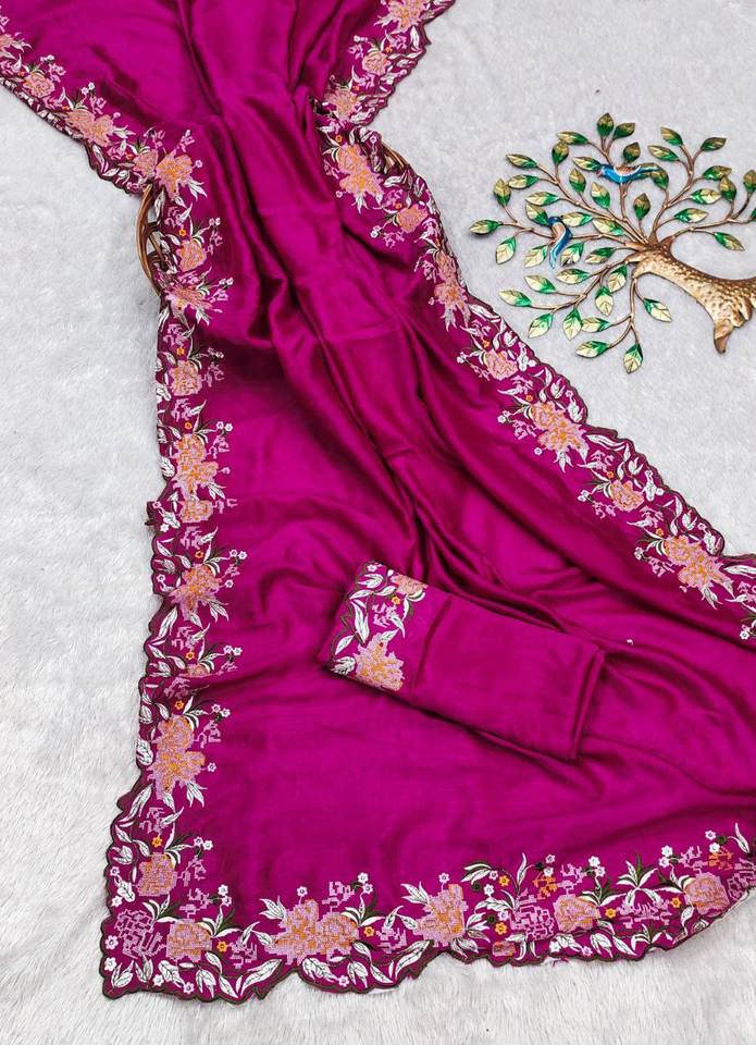 Sari Moderno de Estilo Sencillo y Elegante con Bordado de Corte Sofisticado, Color Brillante, el Más Moderno, con Blusa Combinada con Bordado Múltiple