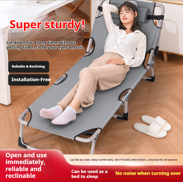 Cama Plegable Portátil de Oficina con Estructura de Hierro, Estilo Moderno, Diseño Mejorado y Más Ancho, Ideal para la Siesta, Plegable en Tres Partes