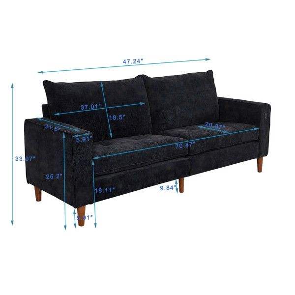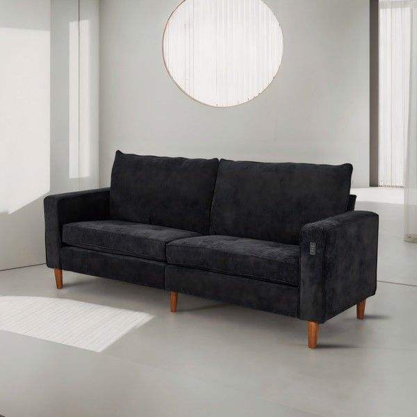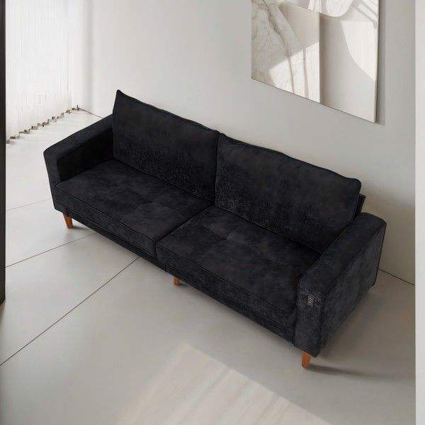 Sofá Moderno de Color Negro Sólido en Pana para Varias Personas, para Sala de Estar u Oficina, con Interfaz USB Incluida