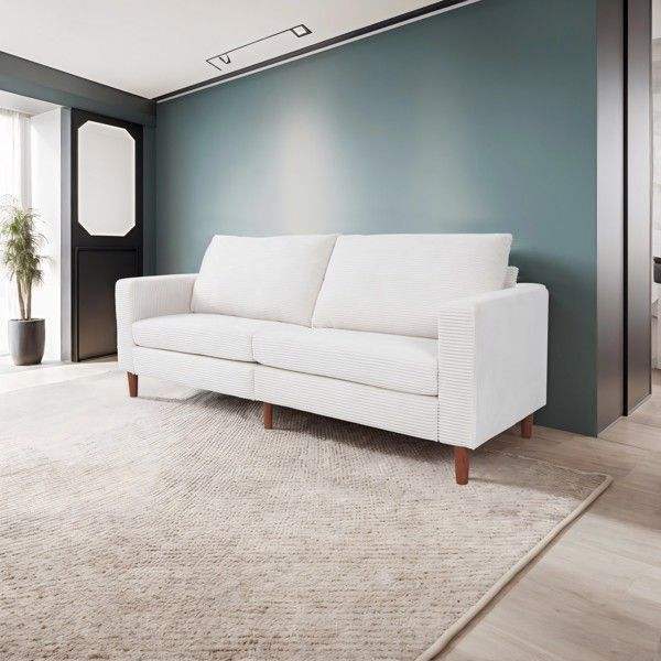 Sofá Moderno de Color Sólido para Varias Personas, Tapizado en Corduroy Blanco para Sala de Estar y Oficina