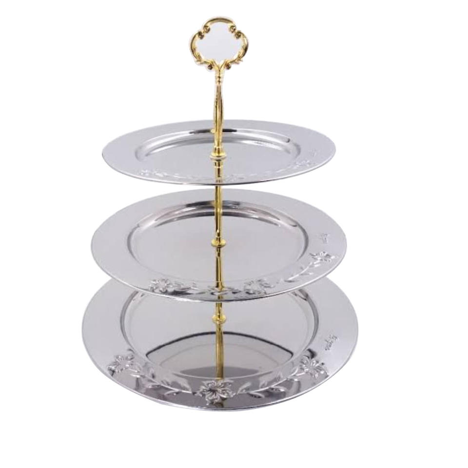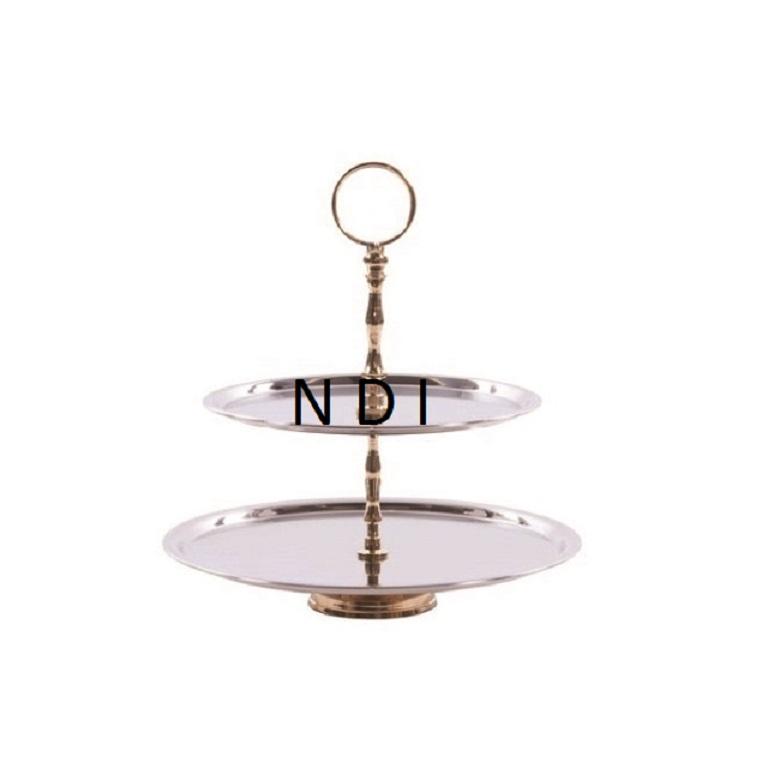 Soporte Plegable de Dos Niveles para Tartas, Acero Inoxidable con Acabado Niquelado, Estilo Moderno, Decoración para Mesa de Fiesta de Cumpleaños