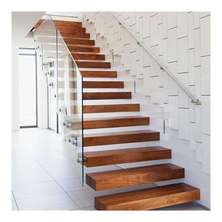 Modelos de Escaleras de Estilo Moderno para el Segundo Piso, Escalera Flotante Interior de Madera, Pasamanos de Varilla de Madera, Escalera de Peldaños