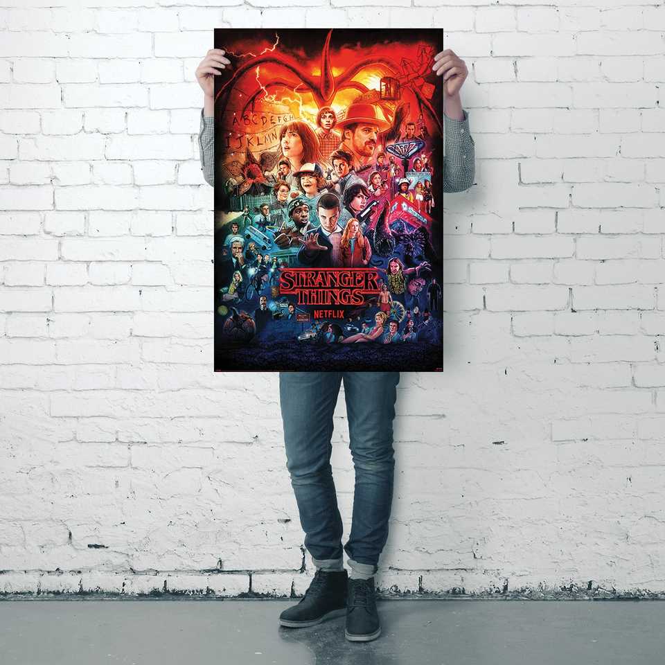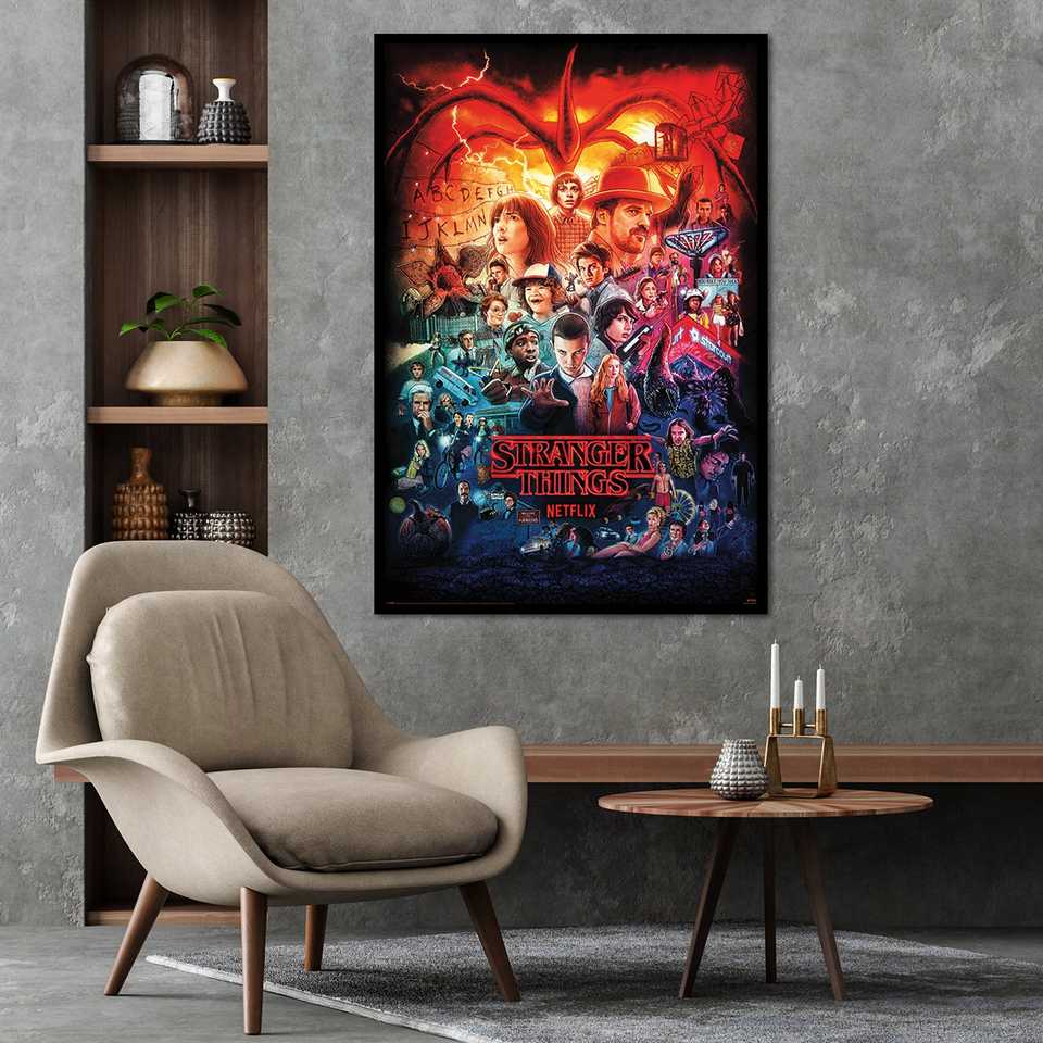 Póster Moderno con Montaje de las 4 Temporadas de Stranger Things para Decoración de Pared