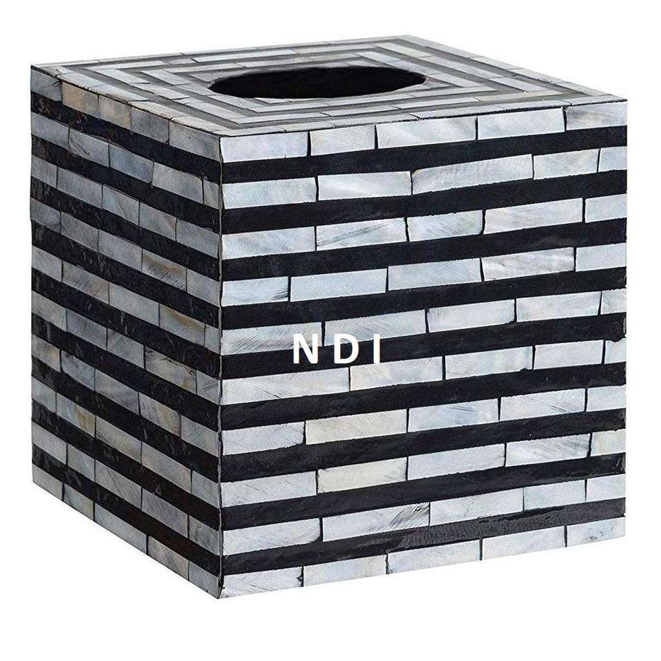 Caja Porta Pañuelos de Estilo Moderno, Forma Redondeada con Acabado de Incrustaciones de Hueso, para Bodas, Fiestas, Celebraciones y Uso en Servicios de Catering