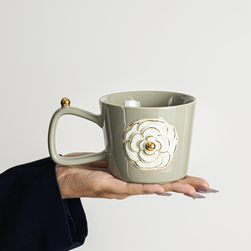 Taza de cerámica de gama alta Vintage de estilo moderno con diseño Original de Camelia Taza de café de oficina diseñada para mujeres