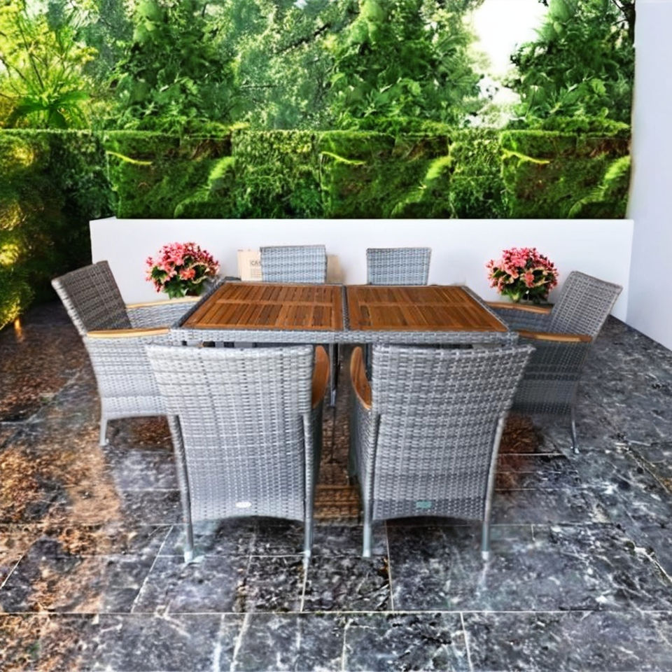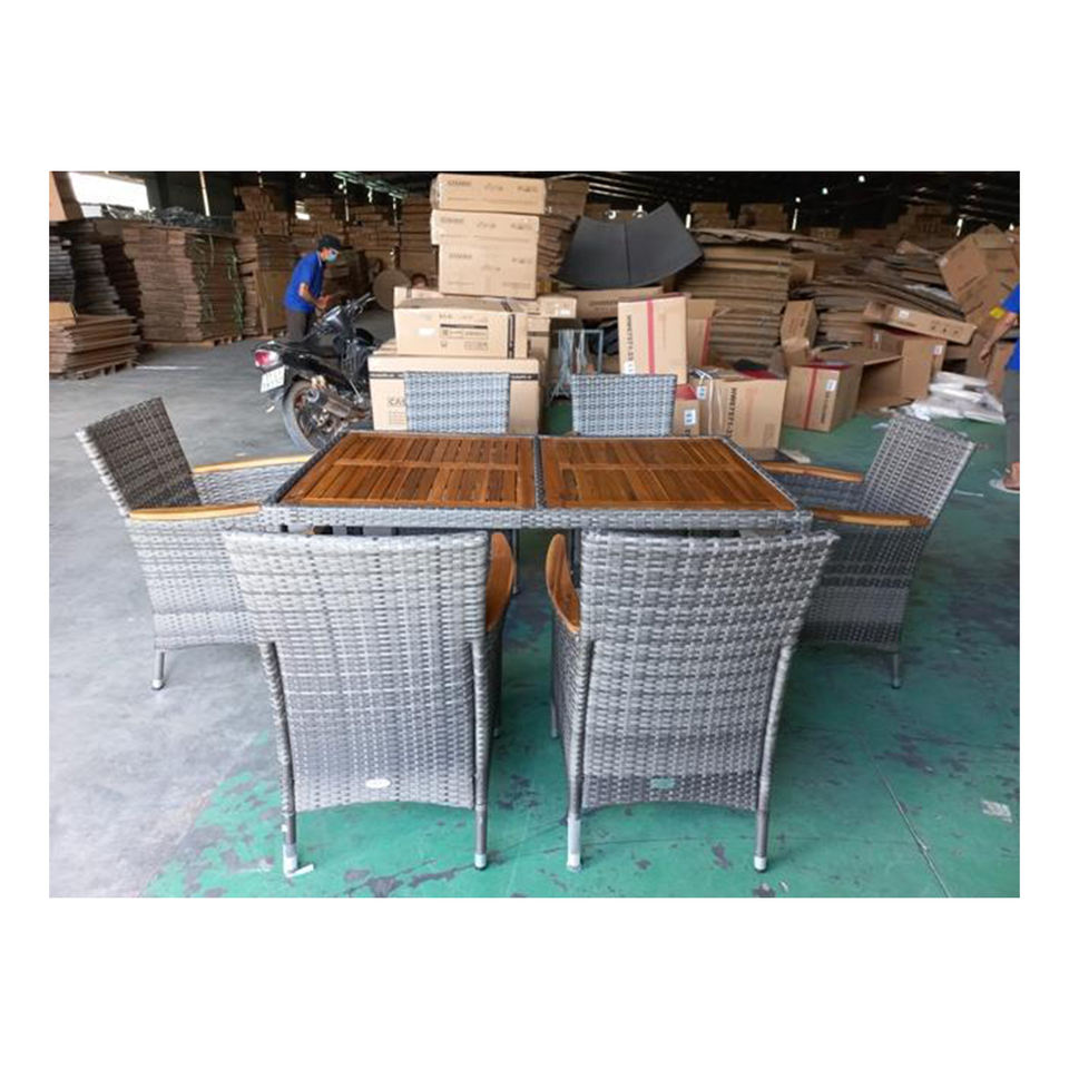 Juego de comedor de mimbre de estilo moderno-1 + 6 de alta calidad y barato con función de madera no apilable para muebles de exterior
