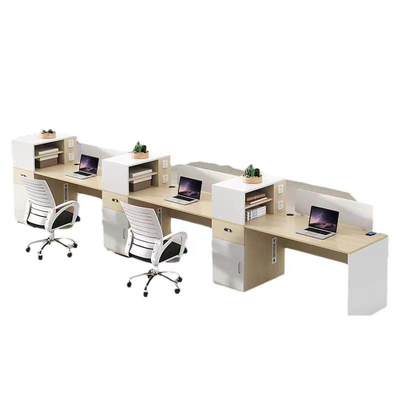 Escritorio de oficina modular comercial con estilo moderno, diseño de madera duradero con archivador y sillas opcionales