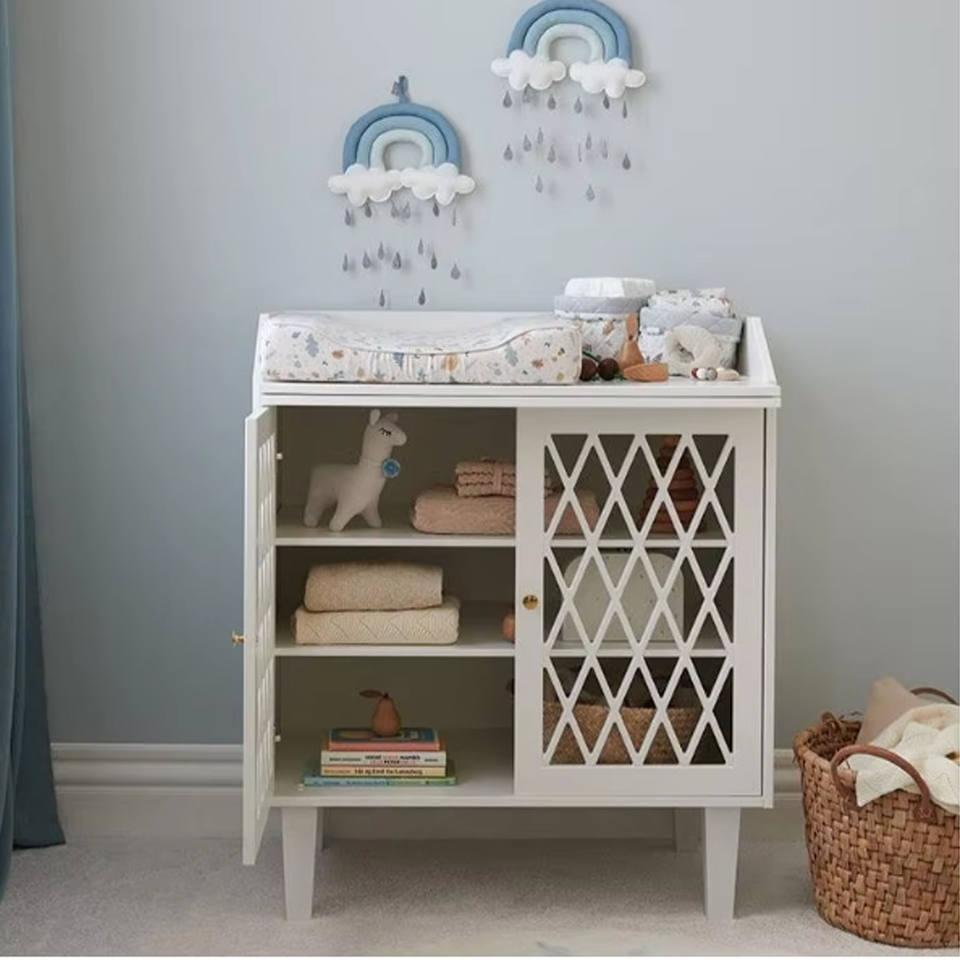 Cambiador de Bebé Moderno y Elegante de Madera Blanca con 3 Cajones Grandes y Tapa Extraíble para Almacenamiento en el Dormitorio o Cuarto de Bebé