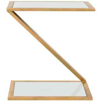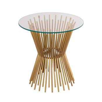 Mesa Auxiliar Moderna con Base de Alambre Dorado y Tapa Redonda de Vidrio, Mesa de Centro Abstracta con Pedestal de Metal para Sala de Estar de Lujo