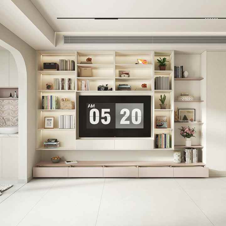 Mueble de TV Moderno con Diseño de Gabinete de Lujo con Sistema de Unidad de Pared para Muebles de Sala de Estar y Organización de Equipos