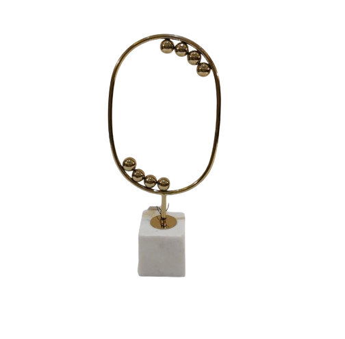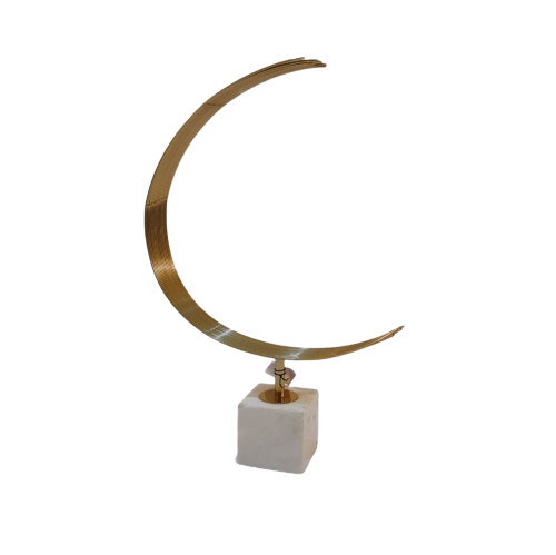 Escultura abstracta de mesa moderna, forma de Luna, color dorado, acabado con mármol para escritorio de oficina, mesa decorativa, escultura para el hogar