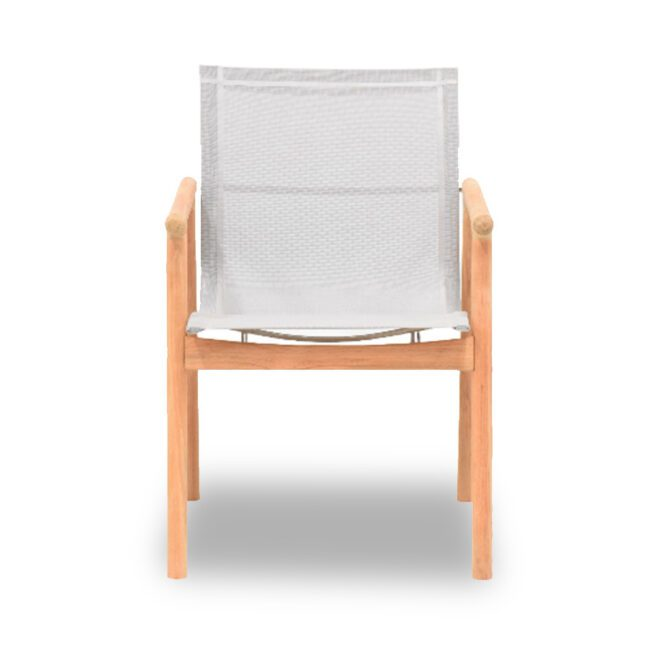 Silla moderna de tejido de cuerda con marco de teca para juego de comedor al aire libre