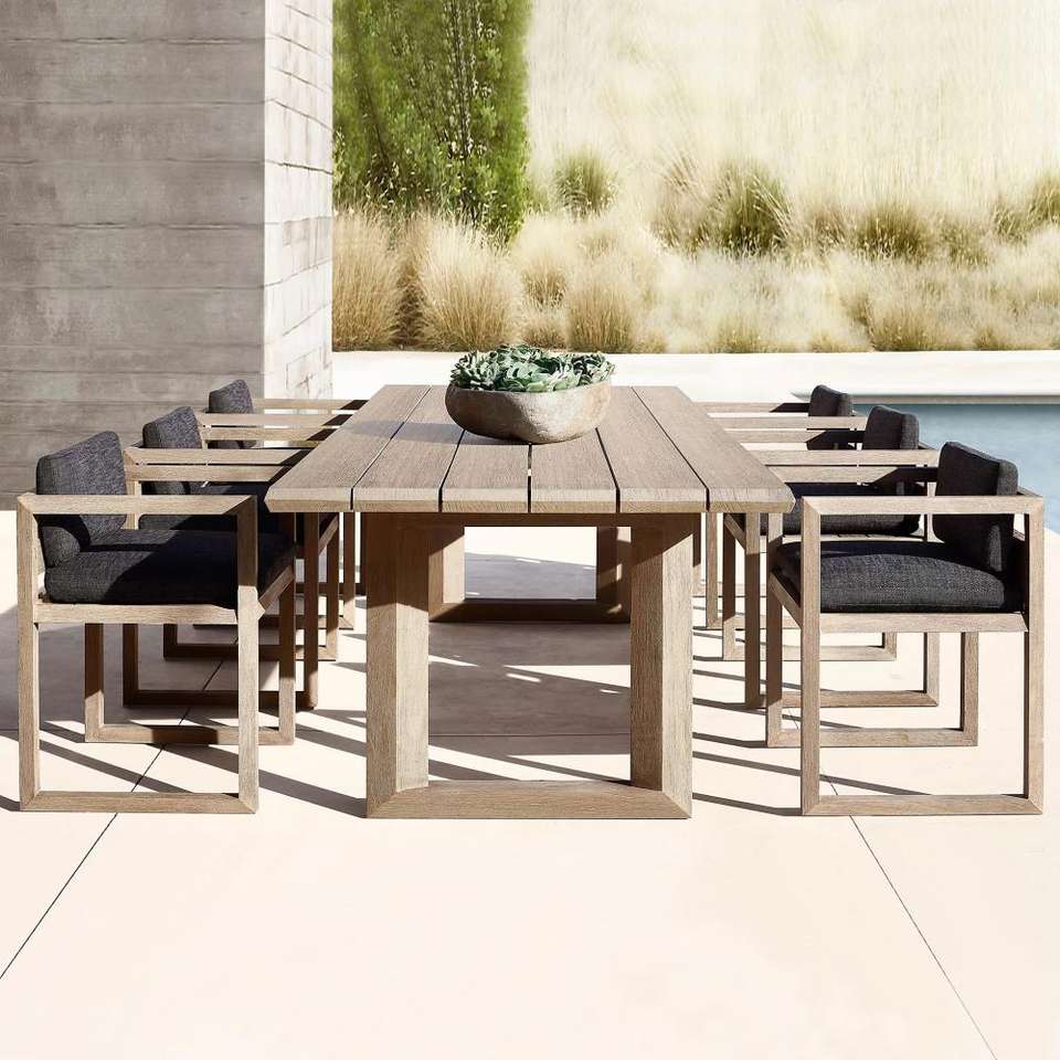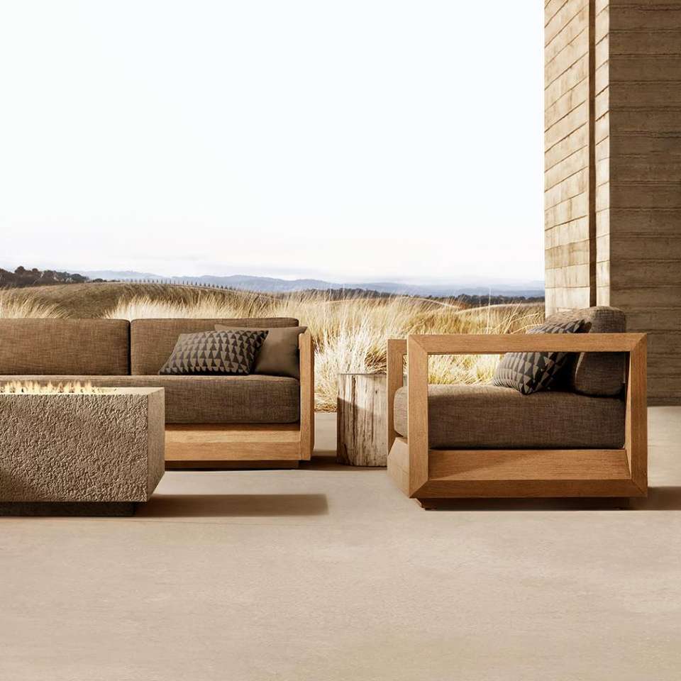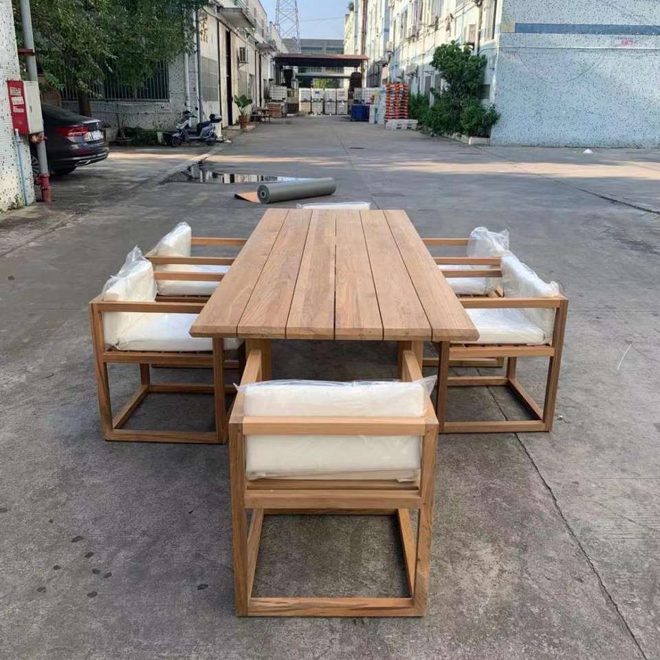 Conjunto de Sofás Modernos de Teca, Resistentes al Agua y con Protección Solar, Muebles de Exterior para Hotel, B&B, Villa, Balcón, Patio, Terraza