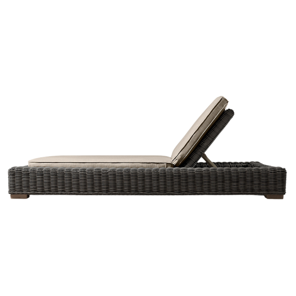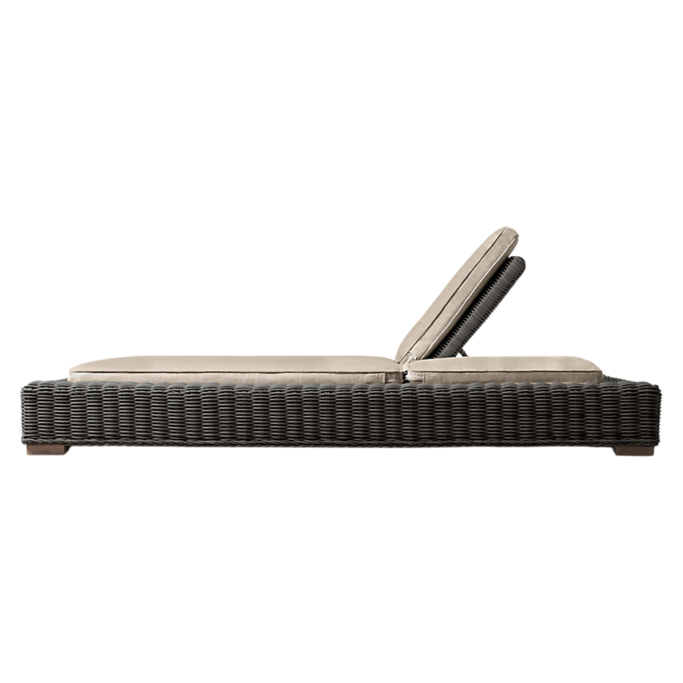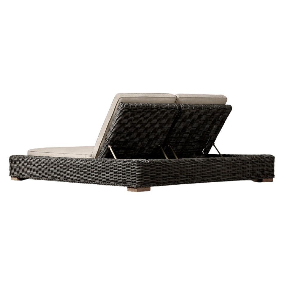 Tumbona Doble Moderna de Teca con Ratán Tejido, Sistema Reclinable Multiposiciones, Cómoda Tumbona para Exteriores, Hotel, Villa