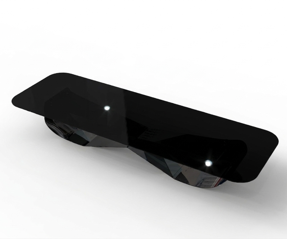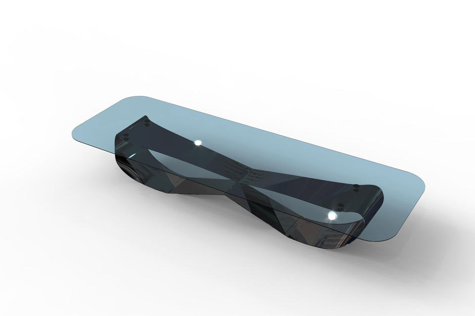Mesa de Centro Moderna de Vidrio Templado con Base Metálica Geométrica, Mesa de Centro de Vidrio Azul de Lujo para Oficina y Sala de Estar