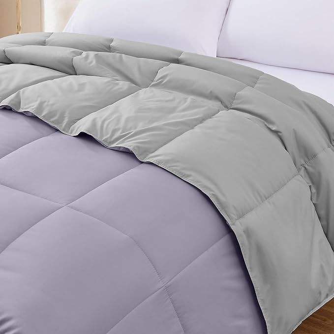 Edredón Reversible Modern Threads para Cama Queen, Color Morado/Plateado, Alternativa a la Pluma, Tipo Quilt