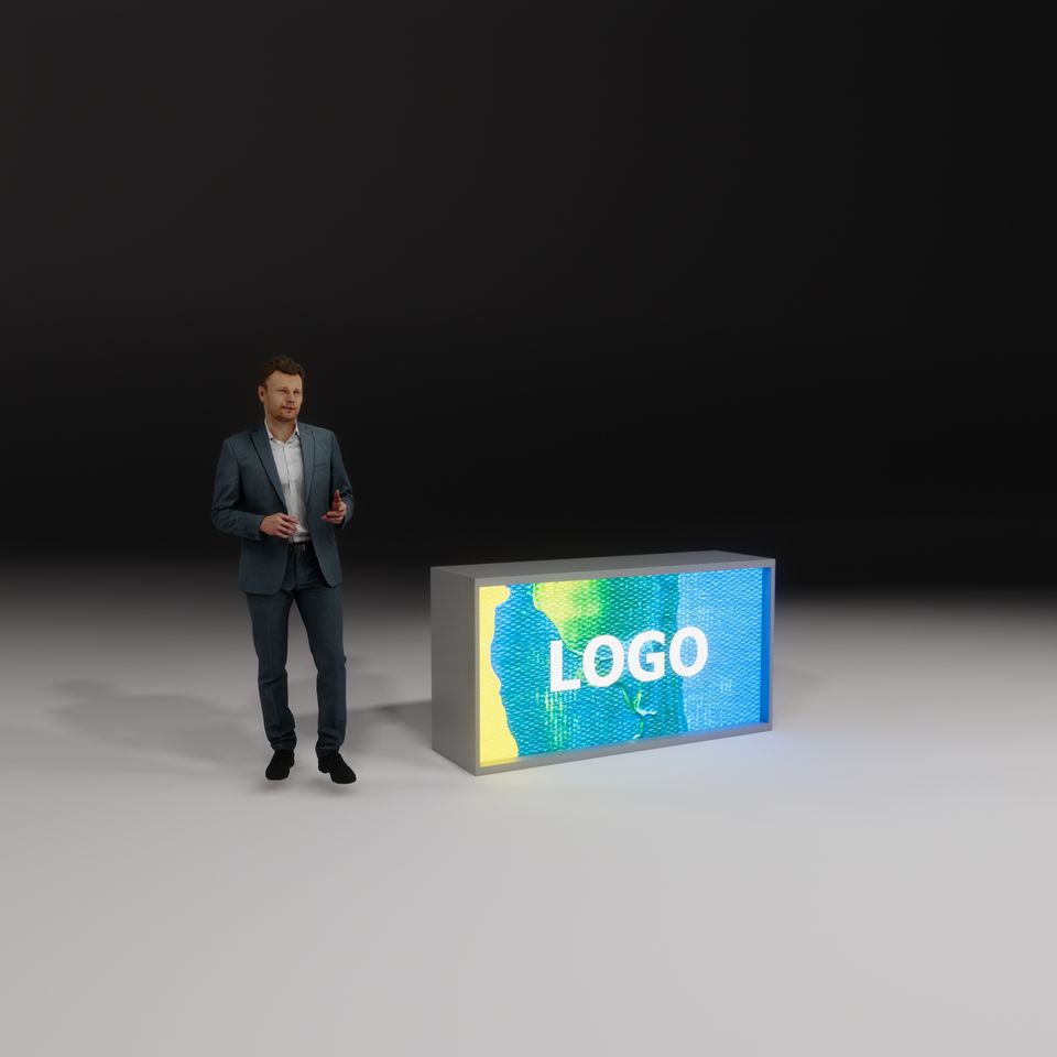 Diseño de cabina de feria comercial moderna, iluminación Led personalizada, Mostrador de logotipo, exposición, caja de luz publicitaria, Banner
