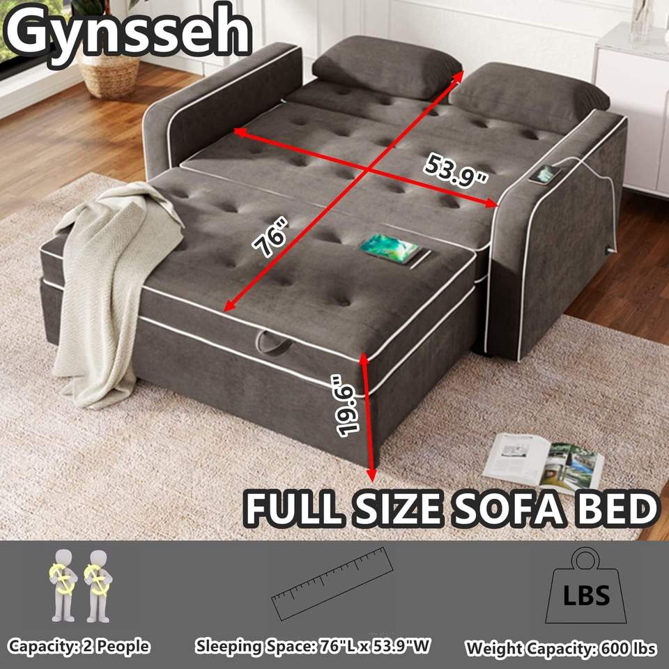 Sofá cama convertible de 2 plazas de diseño tradicional moderno, material de madera, función extraíble, dos cojines para sala de estar y dormitorio