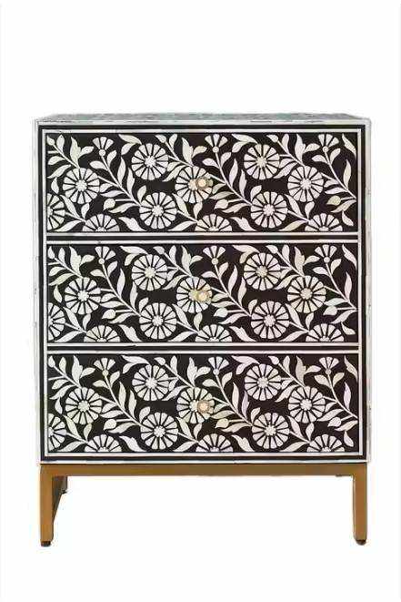 Mesa Consola Moderna Tradicional Hecha a Mano con Incrustaciones de Hueso y Rayas, en Madera Gris para Entrada, con Taburete para Uso Doméstico
