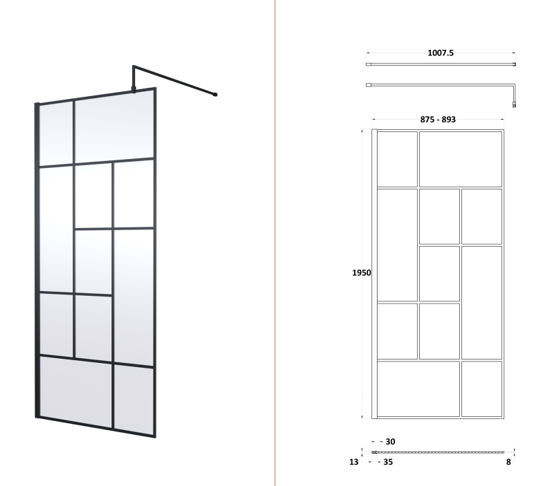 Mampara de Ducha Moderna de Estilo Tradicional Abierta con Cristal Templado para Hoteles, Baños y Apartamentos