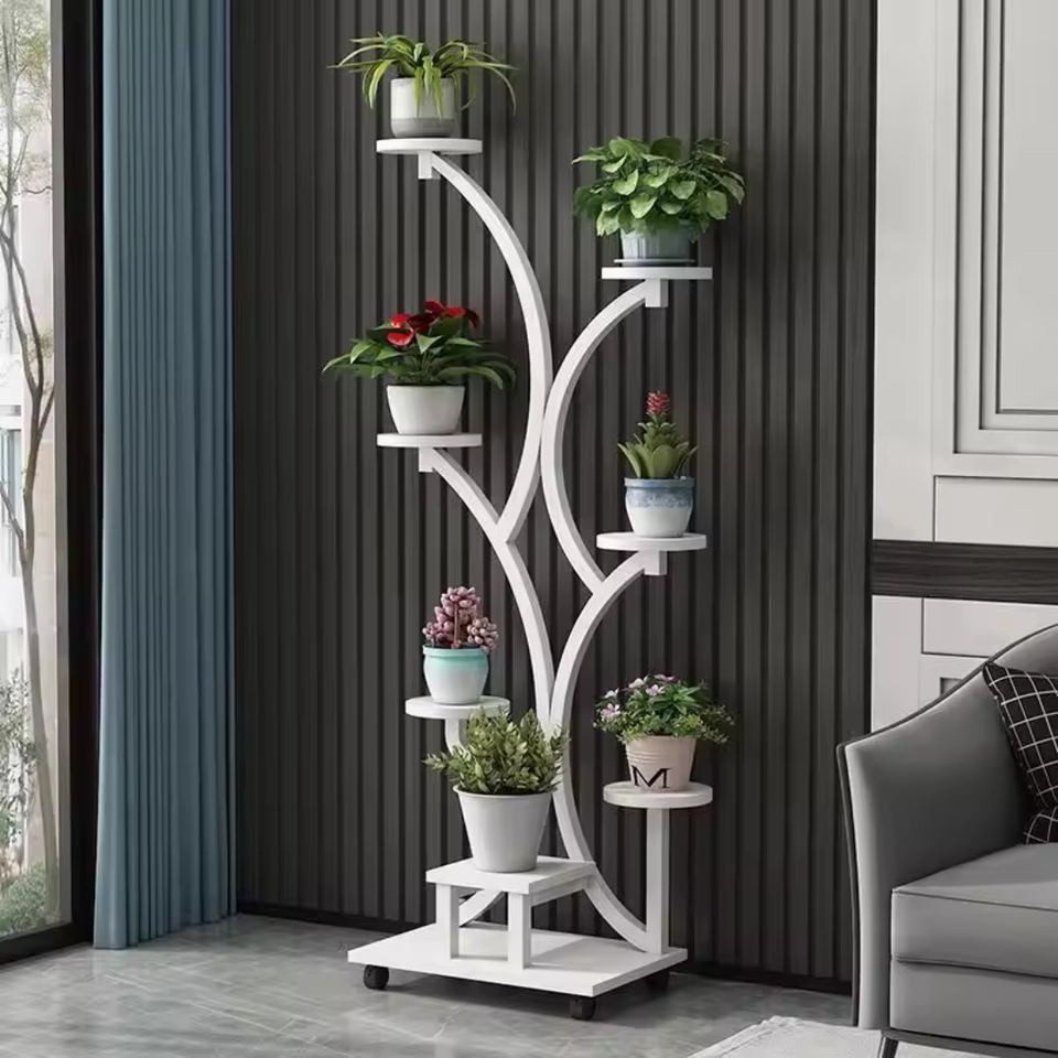 Soporte moderno para plantas de metal en forma de árbol, estante de exhibición de macetas de varios niveles, estante de hierro para interiores para decoración de sala de estar y balcón
