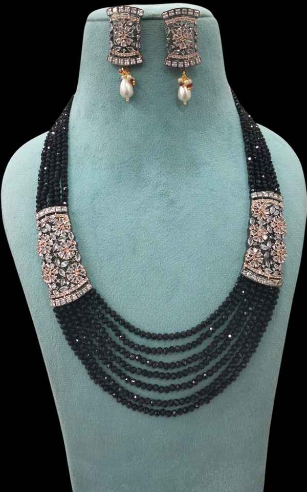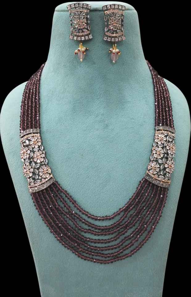 Conjunto de collar moderno multicapa con piedra AD con pendientes, perfecto para recepción de bodas y fiesta para mujer