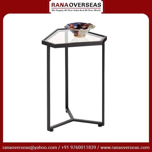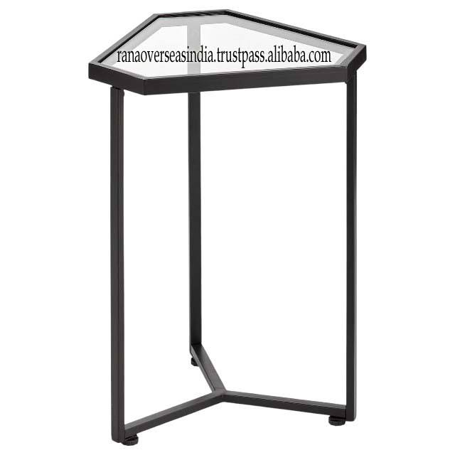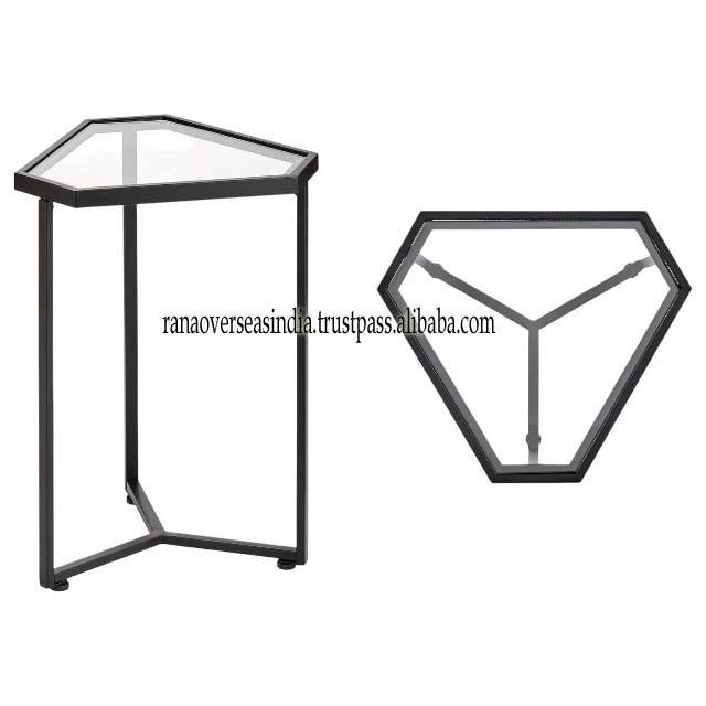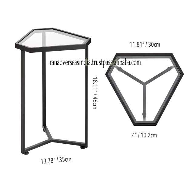 Mesa de Centro Moderna con Diseño Triangular, Tapa de Vidrio y Estructura Metálica, la Más Vendida, para el Hogar, de Rana Overseas Inc