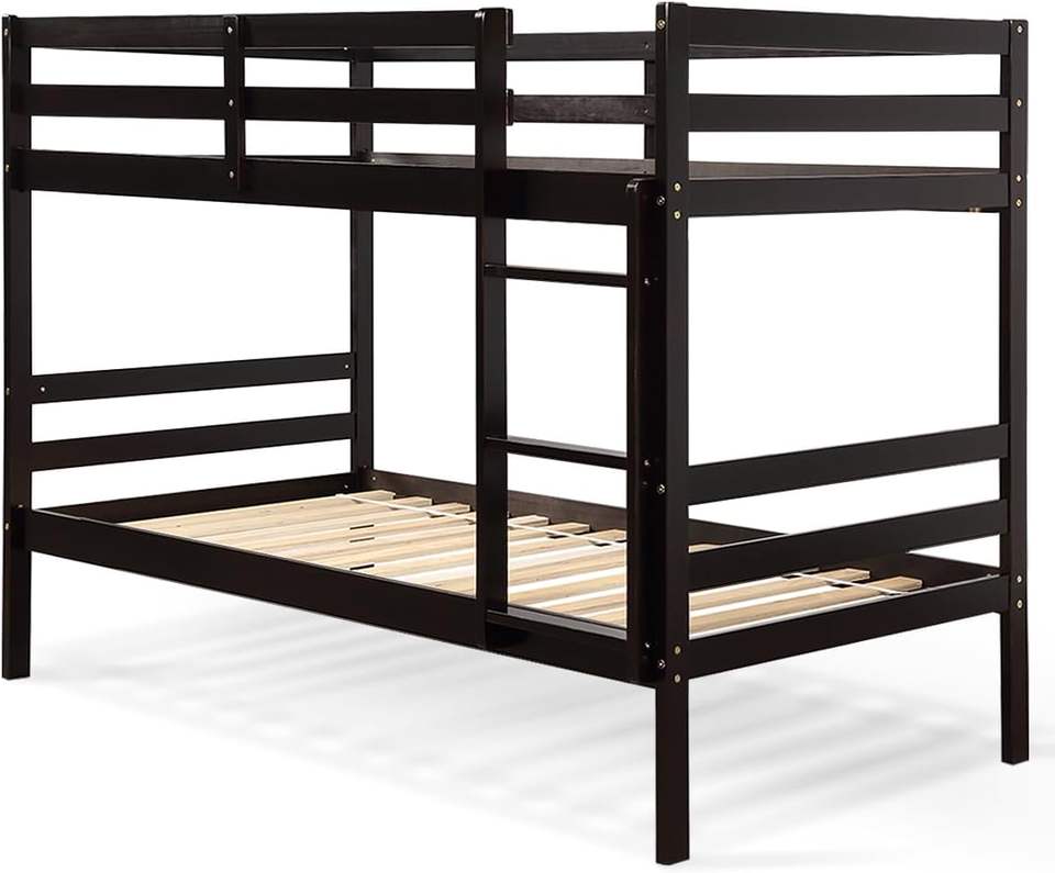 Litera de madera maciza doble moderna, barandilla alta, diseño de listón plano, ahorro de espacio, cama marrón tradicional para el hogar, dormitorio, apartamento