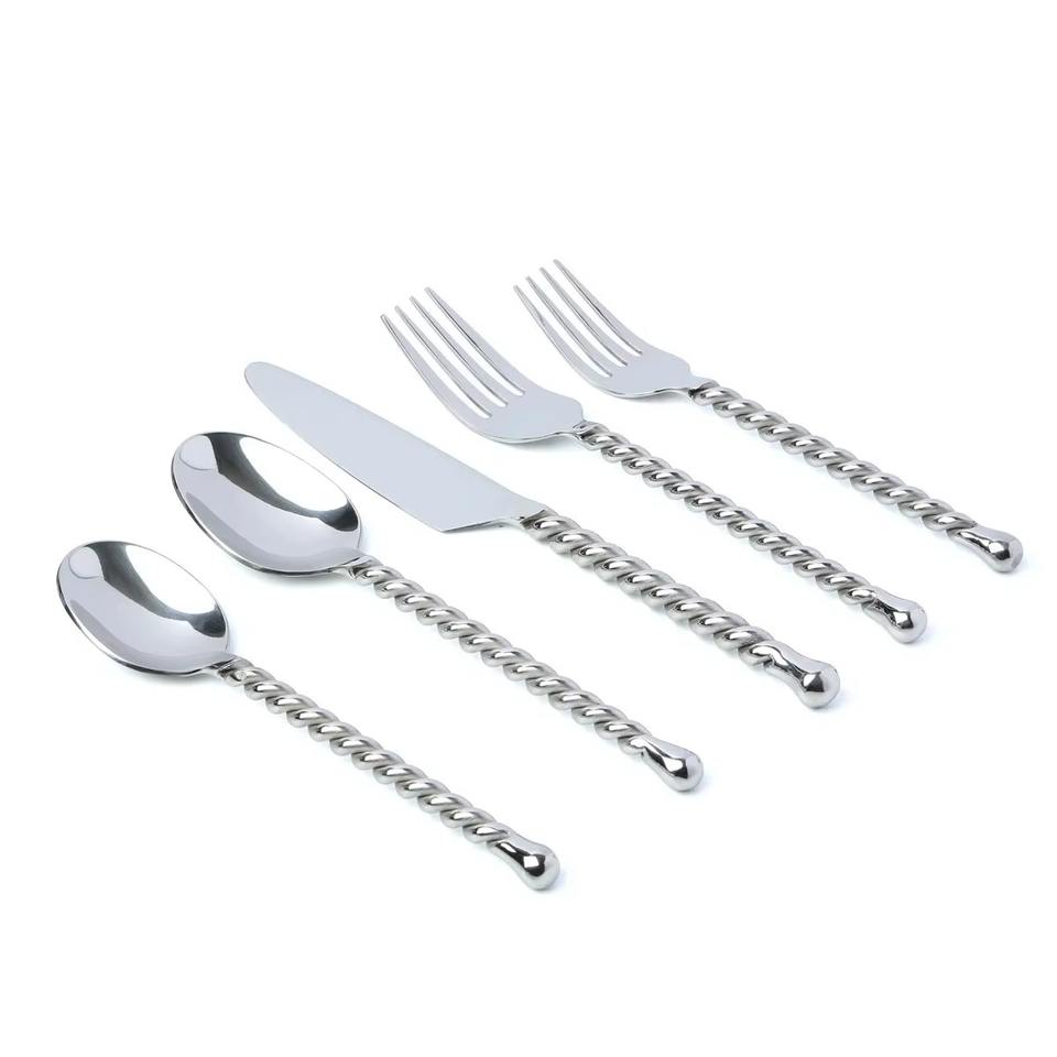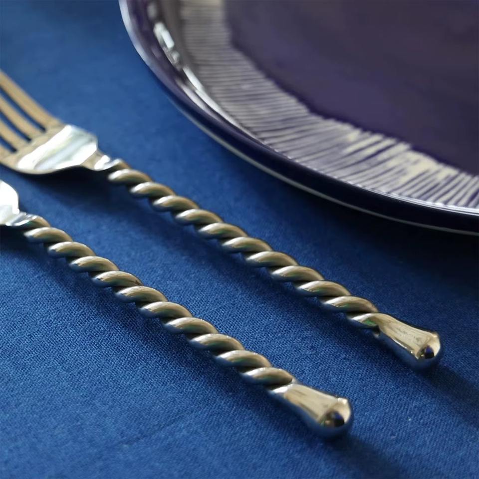 Juego de cubiertos modernos con mango Delgado retorcido, colección de cubiertos elegantes para cenas diarias y eventos de comidas finas de La India