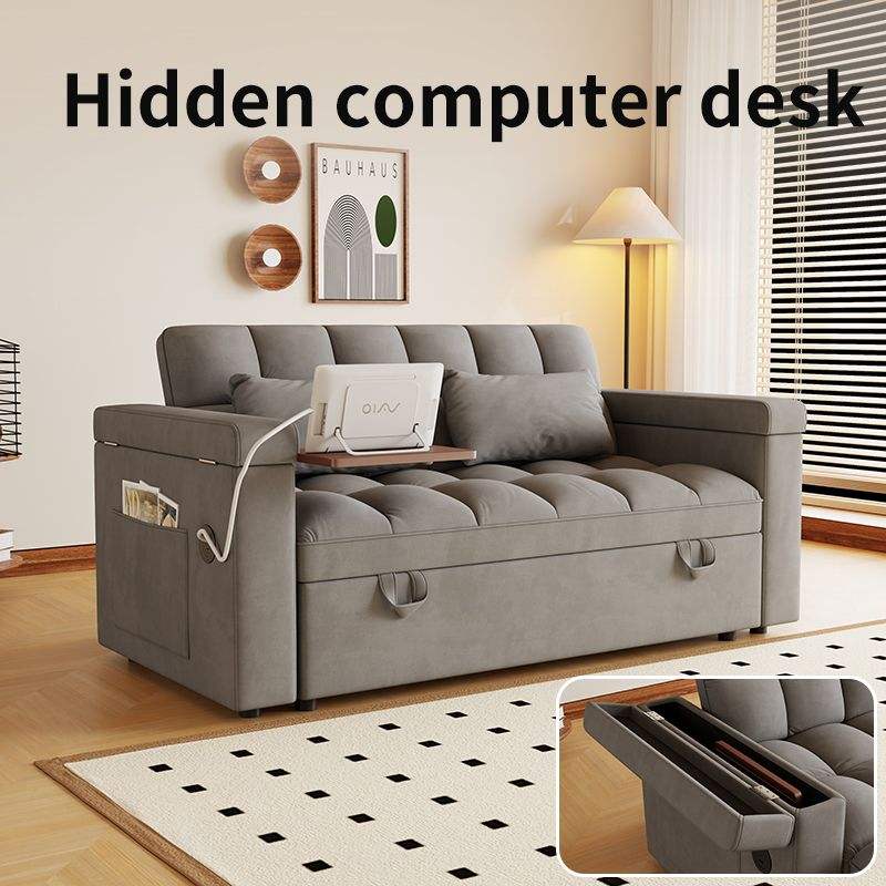 Sofá Cama Doble Plegable 3 en 1 de Terciopelo Moderno de 65 Pulgadas con Mesa y Reposabrazos con Almacenamiento UAB