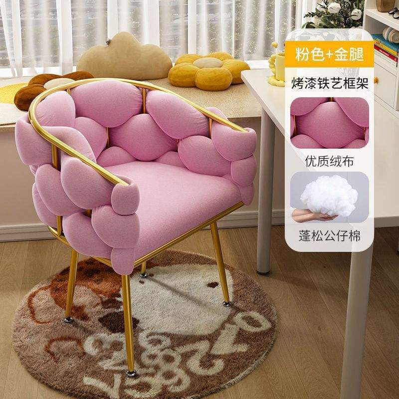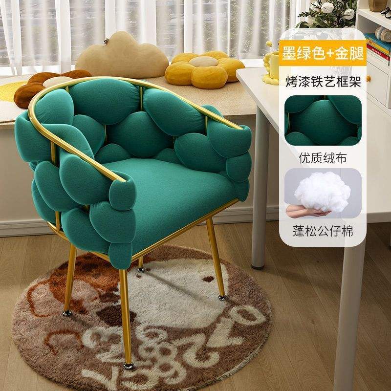 Taburete de Maquillaje Moderno Estilo Terciopelo, Silla Burbuja de Lujo Ligero para Sala de Estar, Dormitorio, Comedor, Hotel, con Respaldo, Silla Sencilla para Tocador y Manicura