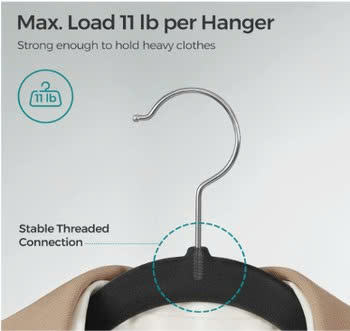 Perchas Modernas de Terciopelo para Trajes, Antideslizantes, con Muescas para los Hombros, Gancho Giratorio de 360 Grados, Color Negro Tinta, 0.2 Pulgadas de Grosor, para Pantalones, Uso en Armarios