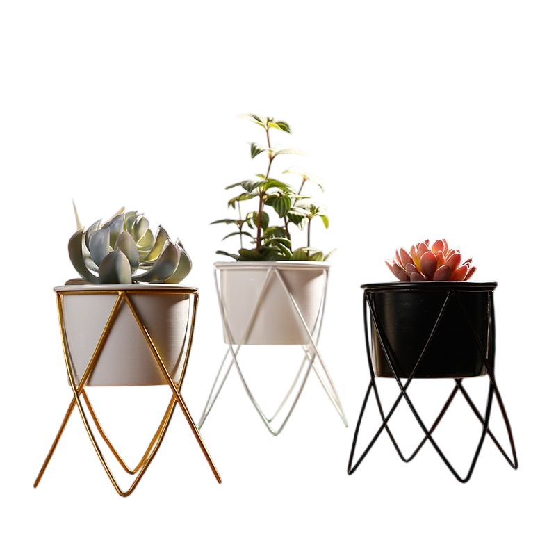 Maceta Moderna Vertical con Acabado en Cobre y Soporte de Hierro Negro Resistente para Plantas de Interior en Oficinas, Hoteles e Interiores de Lujo