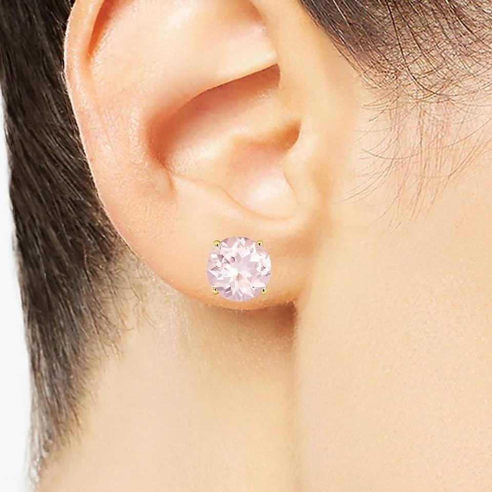 Pendientes de botón de morganita con corte redondo.:Pendiente de diamantes de oro amarillo