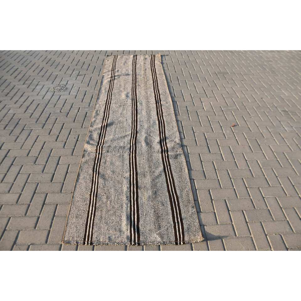 Alfombra turca Vintage moderna de 3x10,8 pies, diseño de retazos blanco y marrón, tejido de yute de lana clásico para sala de estar, pasillo, respaldo de látex