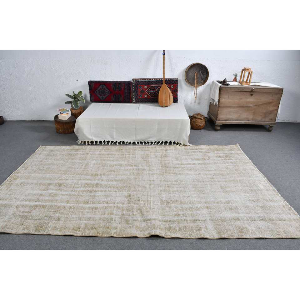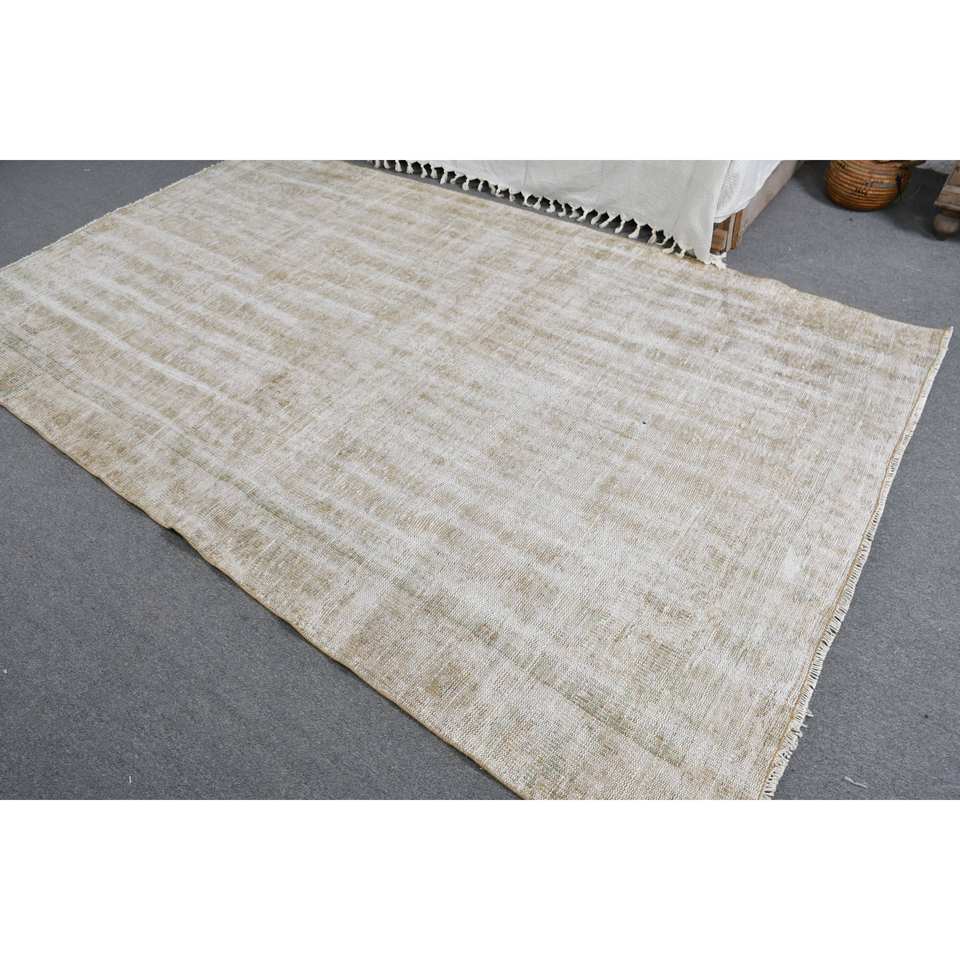 Alfombra turca Vintage moderna de 5,4x9,3 pies, Beige, hecha a mano, diseño clásico de retazos, lana, piel sintética de conejo, látex, pasillo rectangular