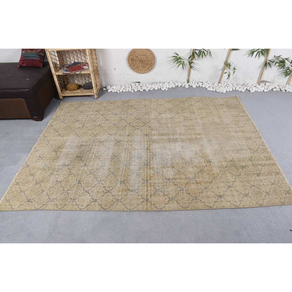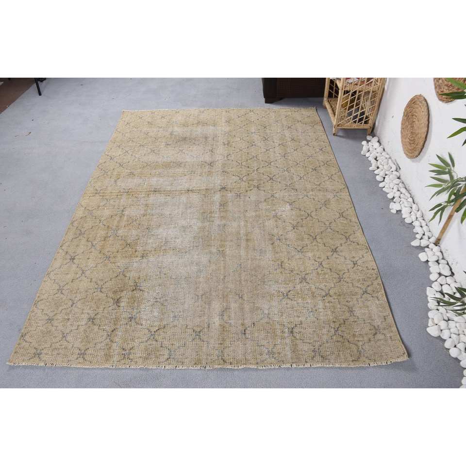 Alfombra turca Vintage moderna, Beige, azul, 5,4x7,4 pies, clásica, grande, forma de rectángulo, lana, felpa, pila de látex para retazos de entrada