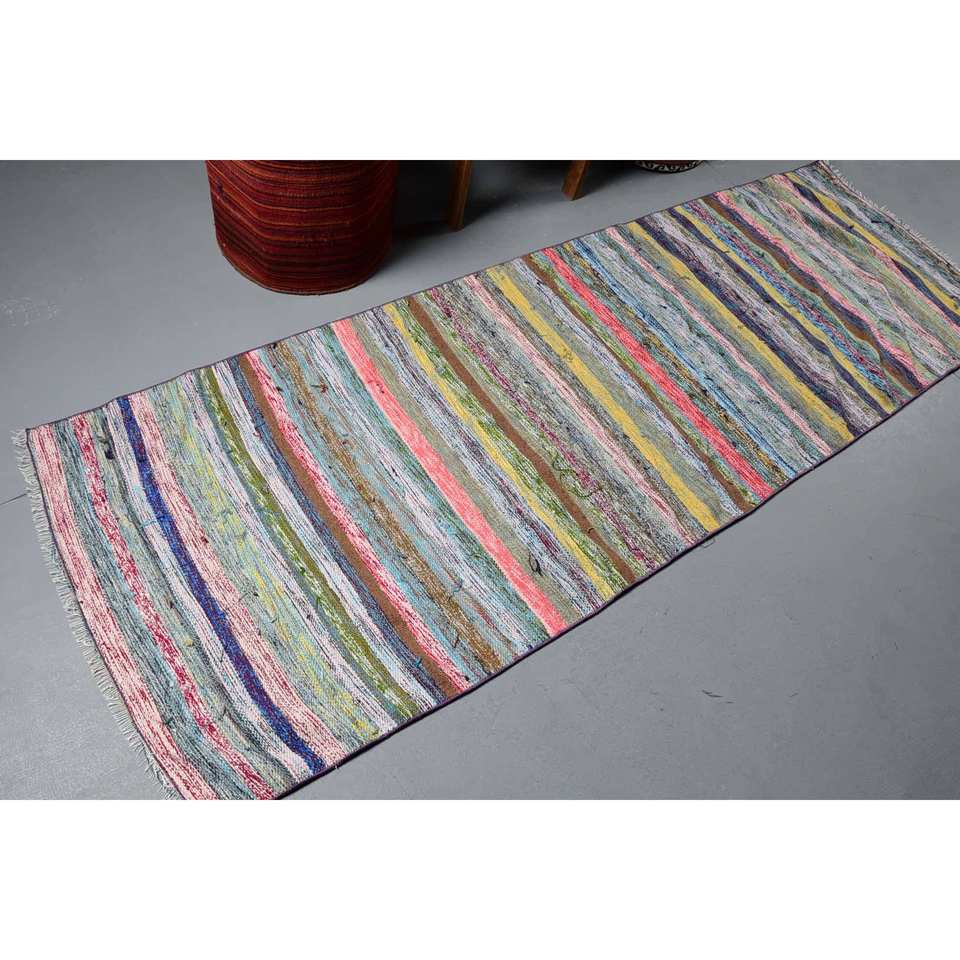 Alfombra turca Vintage moderna, rayas Beige, 2,8x8,5 pies, clásica, gran área, Material de lana, respaldo de látex, Rectangular para dormitorio