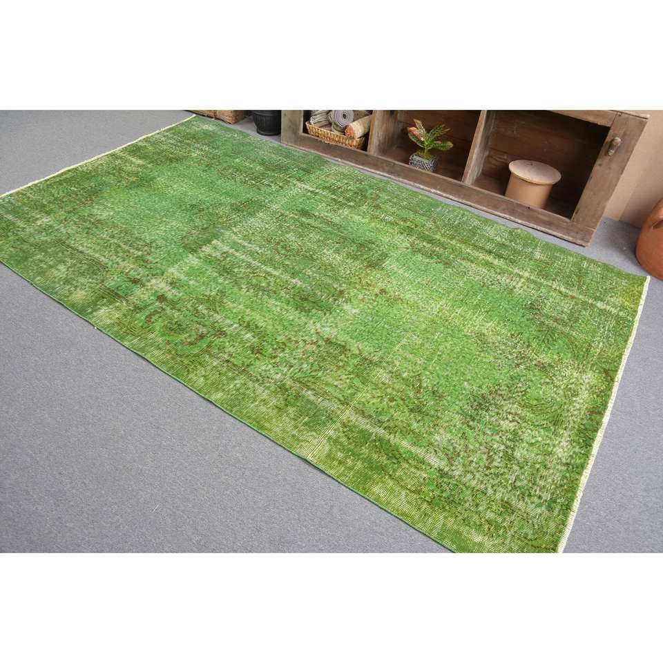 Alfombra turca Vintage moderna, grande, 5,4x9,1 pies, Material de lana, diseño de retazos verdes, respaldo de látex, área rectangular para habitación de pasillo